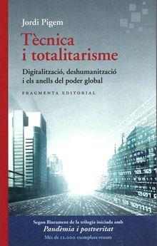 La tecnologia és com el foc. Si la fem servir com una eina, amb contenció, és ben útil. Sense contenció, però, el seu efecte pot ser devastador. Tota nova tecnologia transforma les relacions humanes i les relacions de poder. Les noves tecnologies digitals ¿no tenen alguna cosa de l’Anell de Poder de Tolkien, que sedueix i —alhora— atrapa i fa que la persona sigui vigilada i explotada a distància? L’Anell de Poder de Tolkien té una inscripció oculta que només es veu en contacte amb el foc. Quan s’encén la digitalització del món, ¿què hi veiem: «seguretat, eficiència i progrés» o «control, vigilància i deshumanització»? A partir de la confluència entre el coneixement científic (la psicologia, la neurociència, la sociologia de les noves tecnologies, la història de la ciència) i humanístic (l’univers literari de Tolkien, la intuïció poètica de Rilke, l’anàlisi del totalitarisme de Hannah Arendt, la filosofia d’Agamben), Tècnica i totalitarisme analitza i confronta les propostes, cada vegada més influents, que redueixen els éssers humans a dades i algoritmes i que ens preparen per acceptar ingènuament una nova forma de totalisme tecnocràtic.