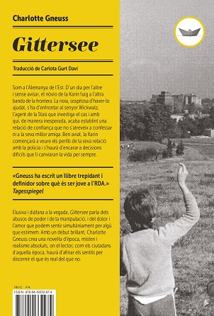 Som a l’Alemanya de l’Est. D’un dia per l’altre i sense avisar, el nòvio de la Karin fuig a l’altra banda de la frontera. La noia, sospitosa d’haver-lo ajudat, s’ha d’enfrontar al senyor Wickwalz, l’agent de la Stasi que investiga el cas i amb qui, de manera inesperada, acaba establint una relació de confiança que no s’atreveix a confessar ni a la seva millor amiga. Ben aviat, la Karin començarà a veure els perills de la seva relació amb la policia i s’haurà d’encarar a decisions difícils que li canviaran la vida per sempre. Elusiva i diàfana a la vegada, Gittersee parla dels abusos de poder i de la manipulació, i del dolor i l’amor que podem sentir simultàniament per algú que estimem. Amb un debut brillant, Charlotte Gneuss crea una novel·la d’època, misteri i realisme absoluts, on el lector, com els ciutadans d’aquella època, haurà d’afinar els sentits per discernir el que és real del que no.