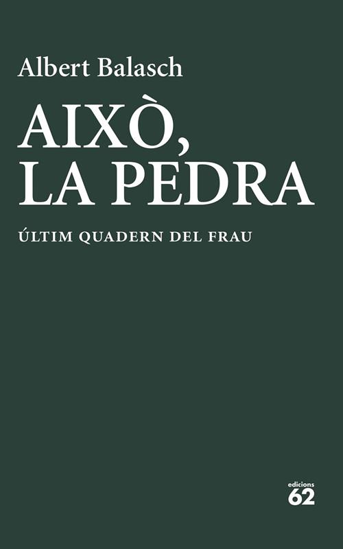 El 2016, Albert Balasch va aplegar a Quadern del frau el resultat de vint anys de dedicació poètica. Deu anys després, Això, la pedra recull tres llibres de versos («Encara belluga», «Llenya per tapar-nos» o «Hores d’escòria»), uns apunts («Tropari») i una elegia («La pedra») que estan destinats a provocar en els lectors de poesia el mateix impacte del Quadern del frau: la certesa que Albert Balasch, el poeta de la vida petita desconcertada, és un poeta necessari. El llibre s’acompanya d’uns dibuixos de Tia Zanoguera, que ja ha col·laborat altres vegades amb Albert Balasch.