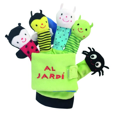 Llibres guant de roba, que incorporen un petit llibre enganxat al guant. Cada dit és un titella. La mida del guant és de la talla de la mà d'un adult. Es tracta de donar vida als personatges tot donant-los moviment i veu.