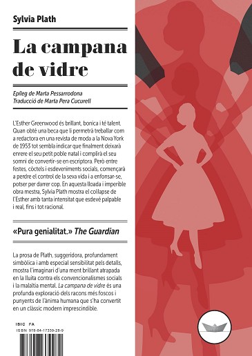 L’Esther Greenwood és brillant, bonica i té talent. Quan obté una beca que li permetrà treballar com a redactora en una revista de moda a la Nova York de 1953 tot sembla indicar que finalment deixarà enrere el seu petit poble natal i complirà el seu somni de convertir-se en escriptora. Però entre festes, còctels i esdeveniments socials, començarà a perdre el control de la seva vida i a enfonsar-se, potser per darrer cop. En aquesta lloada i imperible obra mestra, Sylvia Plath mostra el col·lapse de l’Esther amb tanta intensitat que esdevé palpable i real, fins i tot racional. La prosa de Plath, suggeridora, profundament simbòlica i amb especial sensibilitat pels detalls, mostra l’imaginari d’una ment brillant atrapada en la lluita contra els convencionalismes socials i la malaltia mental. La campana de vidre és una profunda exploració dels racons més foscos i punyents de l’ànima humana que s’ha convertit en un clàssic modern imprescindible.